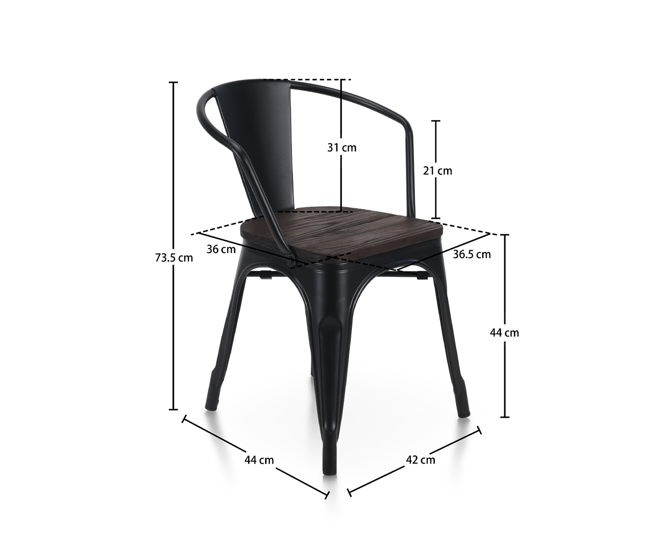• Loketní opěrky jsou ergonomicky tvarovány tak, aby poskytovaly optimální podporu, zatímco opěradlo nabízí pohodlný štíhlou. Dřevěné sedadlo Elm přidává výraznou vizuální přitažlivost. Kompaktní rozměry a lehká struktura židle usnadňují manévrování a stohování a nabízí praktičnost bez kompromitu na styl.