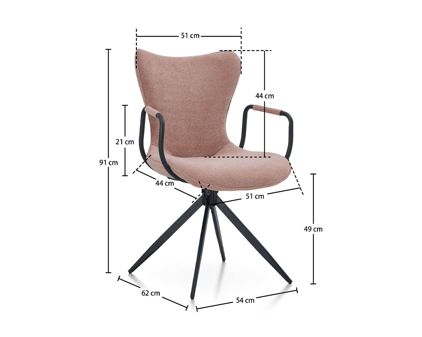 • Zabaleno do luxusní červenavé růžové tkaniny, vyzařuje teplou a příjemnou atmosféru. Konstrukce židle je zamyšleně vytvořena tak, aby poskytovala optimální podporu a pohodlí, což je vhodné pro každodenní použití i zvláštní příležitosti.