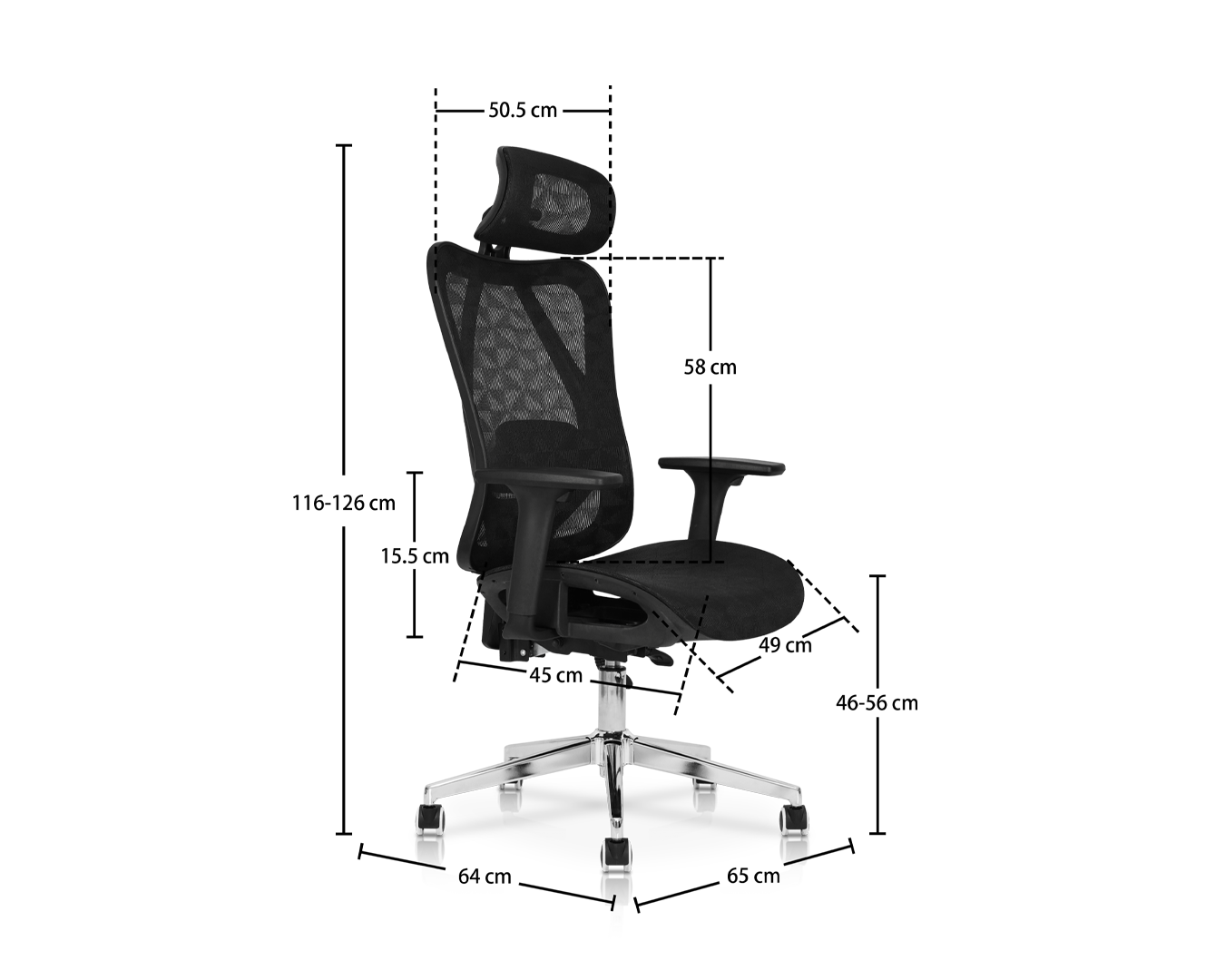 -Velikost: W65*D64*H116-126 cm / sh: 46-56 cm