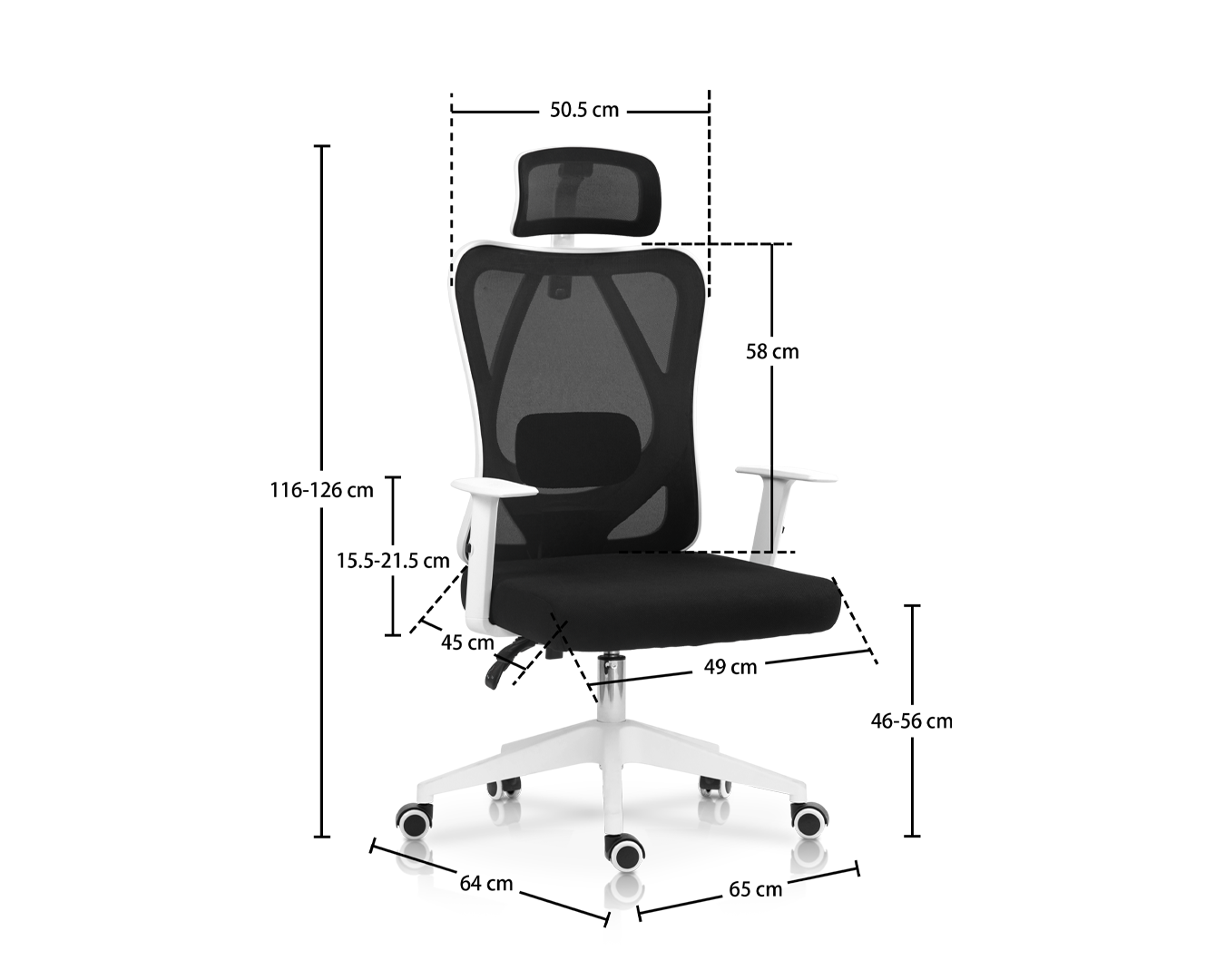 • Mechanismus nastavitelné výšky umožňuje přizpůsobit židli tak, aby vyhovovala vašim specifickým potřebám, a zajistit, aby vaše nohy byly ploché na zemi a kolena jsou pod úhlem 90 stupňů. Loketní opěrky lze upravit tak, aby poskytovaly perfektní podporu pro vaše paže a snížily namáhání na vašich ramenou a krku. Bederní podpora zabudovaná do opěradla podporuje správné držení těla a zvyšuje celkové pohodlí a produktivitu.