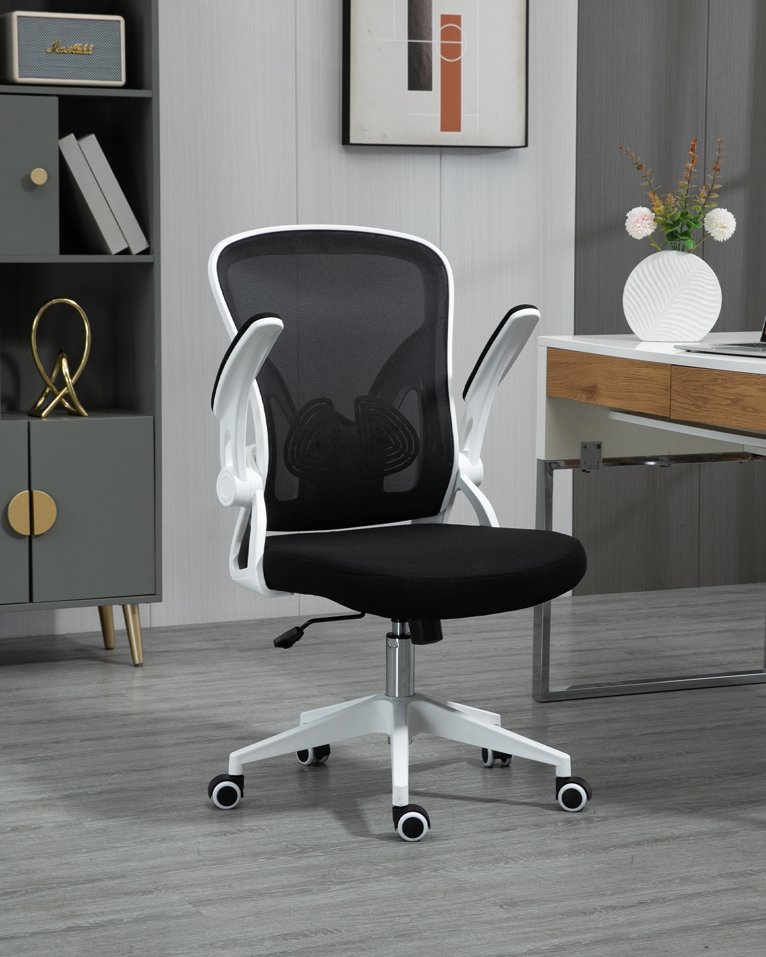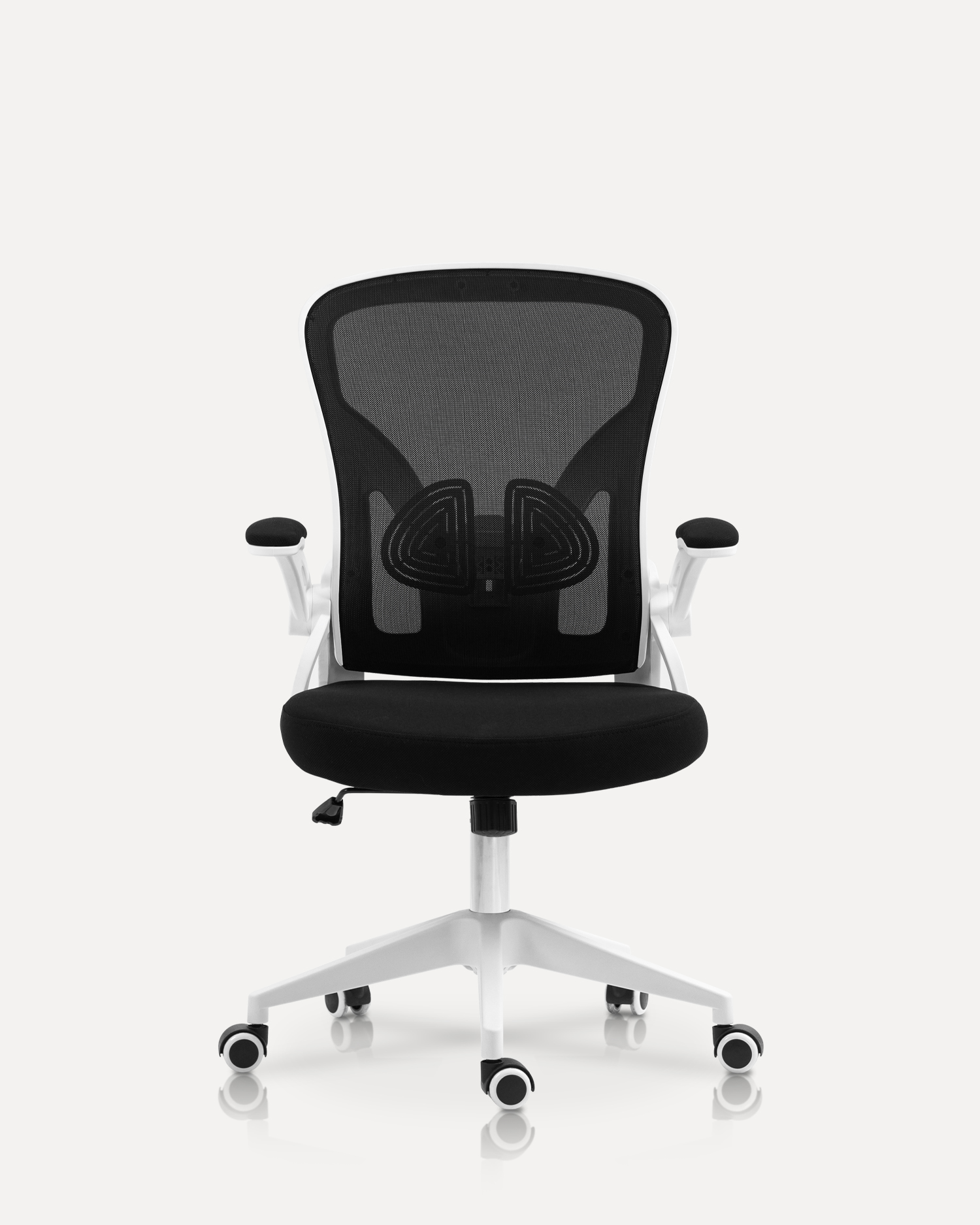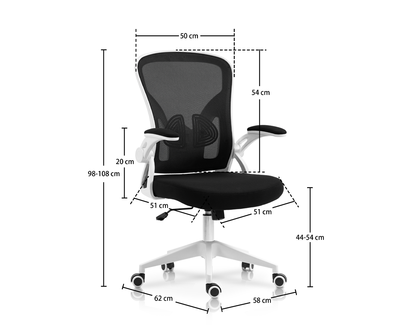 • Obsahuje elegantní a moderní design s černým opěradlem a sedadlem, doplněným bílými opěrkami a pětibodovou základnou. Materiál sítě nejen přispívá ke stylovému vzhledu židle, ale také poskytuje vynikající prodyšnost, což zajišťuje, že zůstanete v pohodě a pohodlí po celý den.