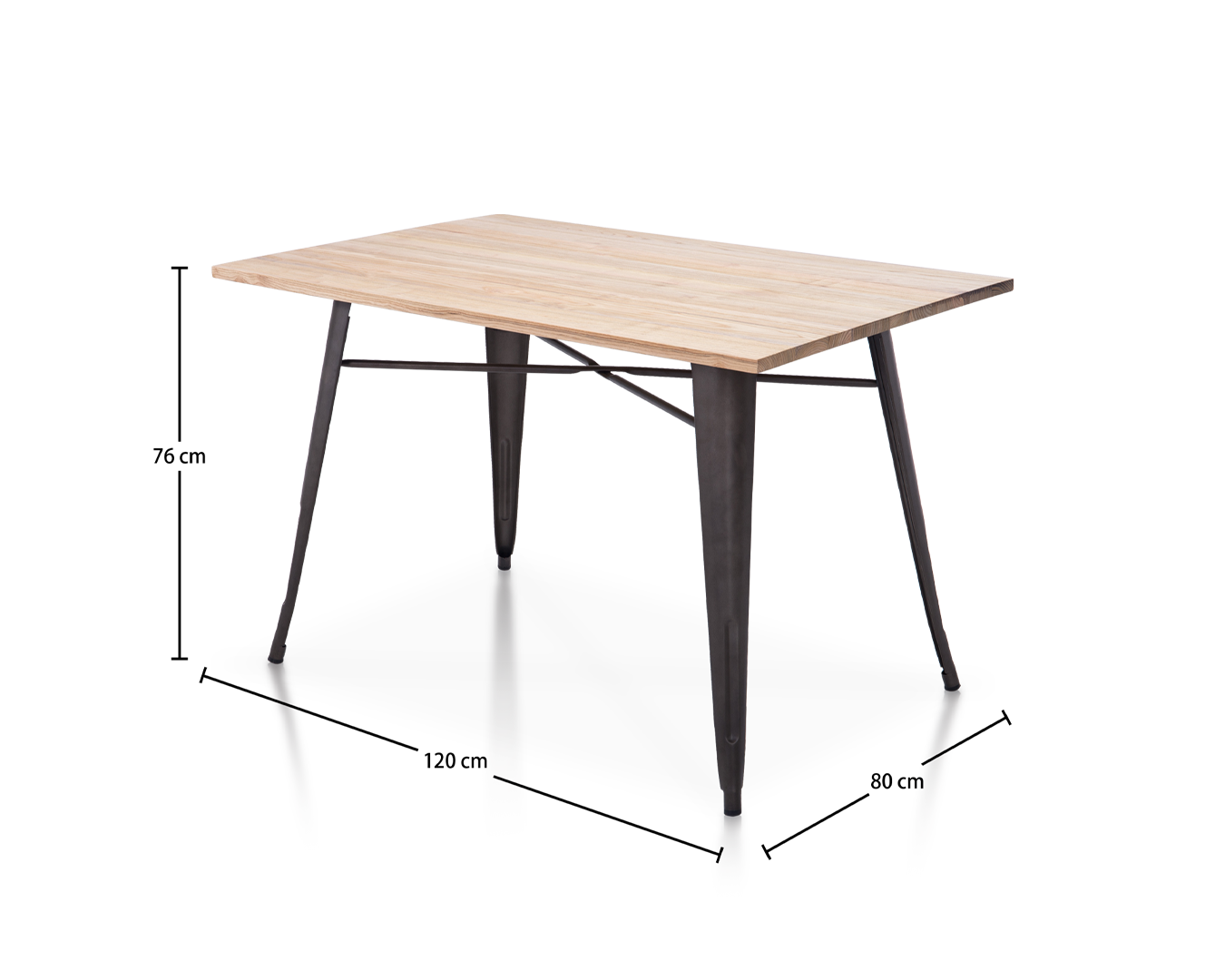 • Tabulka je vyrobena z prémie Elm Wood, známá svou trvanlivostí a bohatou texturou. Leštěný povrch zdůrazňuje přírodní krásu dřeva a do jakékoli místnosti přidává pocit tepla a charakteru. Doplňování dřevěného vrcholu jsou robustní železné nohy, dokončené v matné černé barvě, která přidává moderní a průmyslový dotek. Tato jedinečná směs materiálů zajišťuje, že stůl dokáže denně vydržet při zachování svého stylového vzhledu.