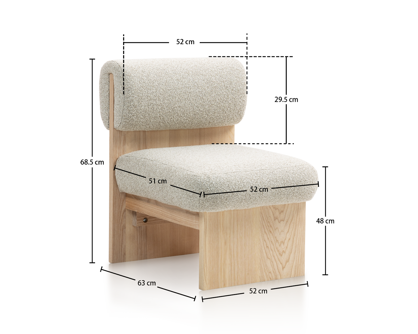 • Tato židle navržená s pohodlím v jádru má velkoryse polstrované sedadlo a opěradlo, obklopuje vás měkkostí a podporou. Rámový dřevěný rám, známý pro svou trvanlivost a krásu, poskytuje robustní základ při zachování elegantního a moderního vzhledu. Cylindrical Backrest přidává jedinečný nádech a nabízí ergonomickou podporu, která dokonale sladí s obrysy vašeho těla.